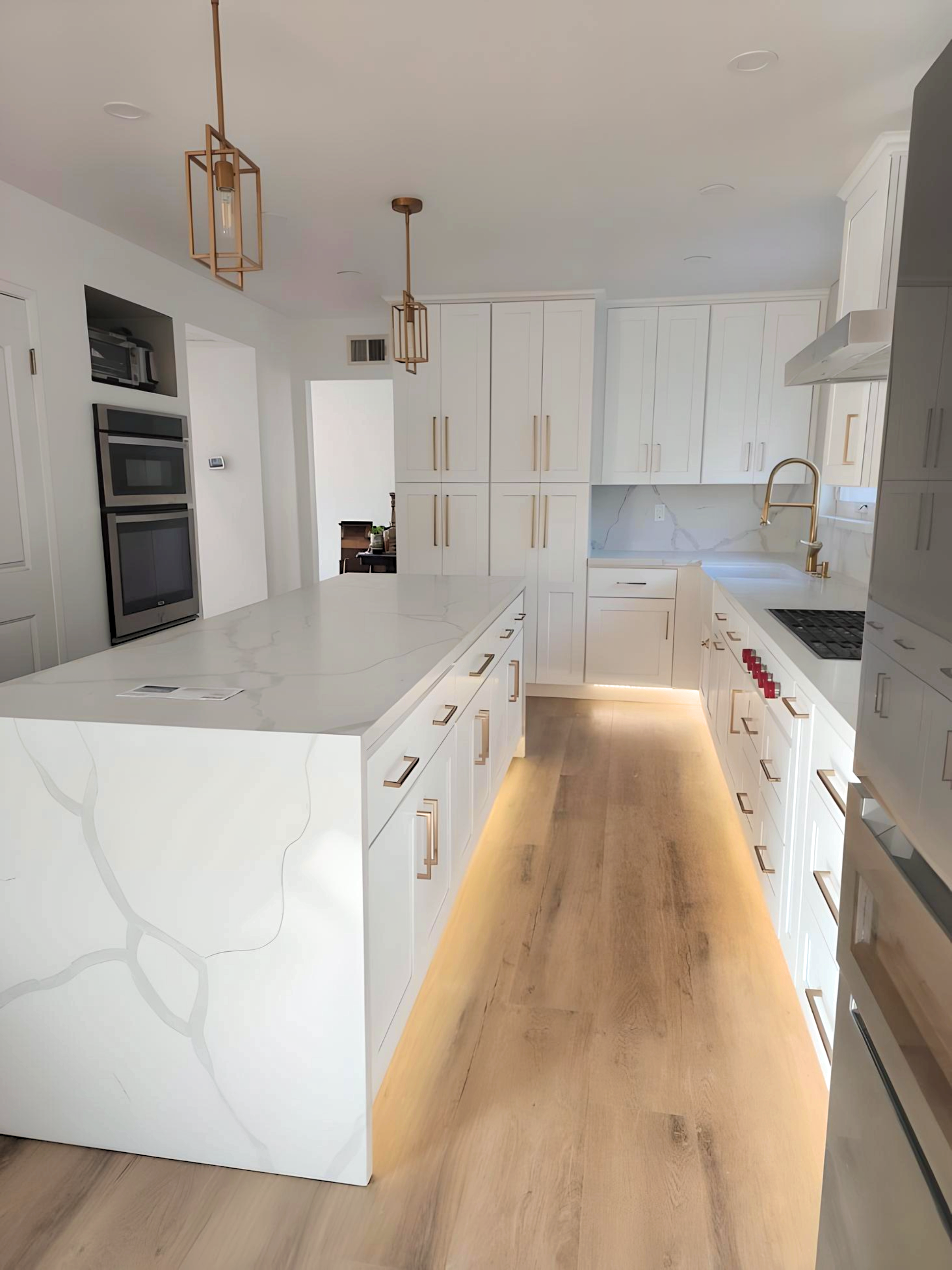 Building trust with quality work is the cornerstone of our philosophy. Just like the exquisite photograph of a beautiful kitchen captures attention, our commitment to delivering top-notch craftsmanship and exceptional attention to detail ensures that our clients can rely on us to bring their dream kitchens to life. Every cabinet, every countertop, and every fixture we install reflects our dedication to excellence, and it's this dedication that fosters the trust of our customers. Just as a stunning kitchen becomes the heart of a home, our quality work becomes the foundation upon which we build long-lasting relationships with our clients, making their dreams a reality.